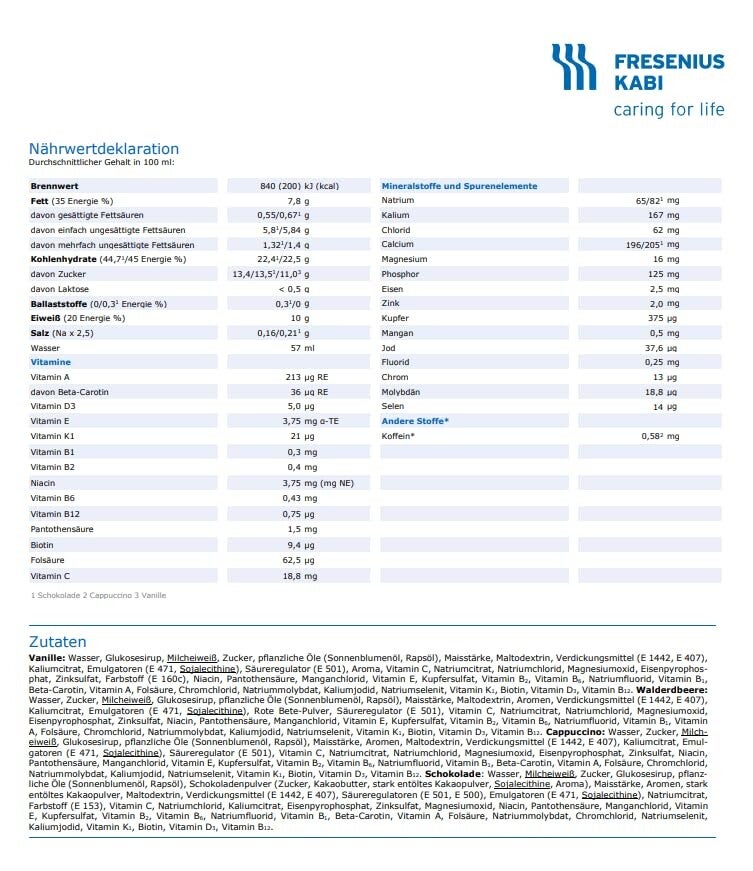 Mit 2,0 kcal/g liefert jede Portion 250 kcal in nur 125 g Creme und eignet sich besonders für Patienten mit erhöhtem Energiebedarf oder bei Kau- und Schluckstörungen (z. B. in der Geriatrie oder Onkologie).