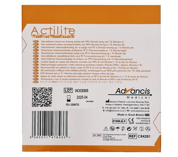 Die ACTILITE Wundkompresse ist eine sterile Wundauflage aus weicher Viskose-Gaze, die mit medizinischem Manuka-Honig und Manukaöl imprägniert ist. Sie wirkt antibakteriell, unterstützt die natürliche Wundheilung und schützt die Wunde zuverlässig vor Infektionen. Durch ihre flexible Struktur ist die Auflage angenehm zu tragen und eignet sich auch für empfindliche Haut.